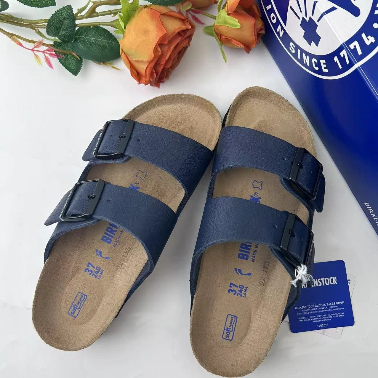 Sandalias Birkenstock Arizona Plantilla Suave Azul Birko-Flor - Tallas 37 al 43